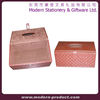 tissue box Item no.:M300112 Material:MDF core; fakeleather for outside,velvet for the lining; anymaterials and sizes and designs and logos can be according to yours minds.